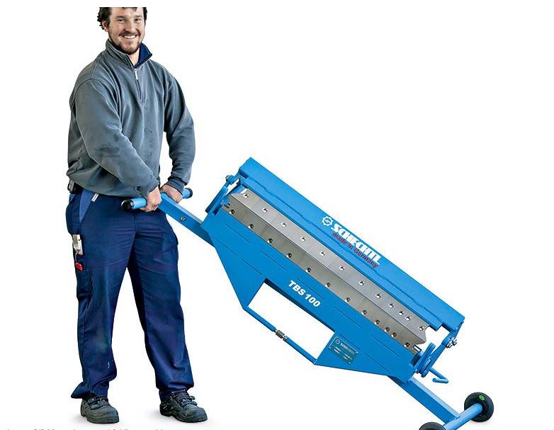 The TBS 100 is the smallest of the manual segment folding machines in the Schechtl range. Thanks to its small dimensions, the TBS can be moved effortlessly on the construction site - between floors, on scaffolding and in confined spaces. The working length is 1000 mm.